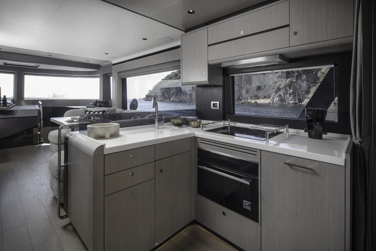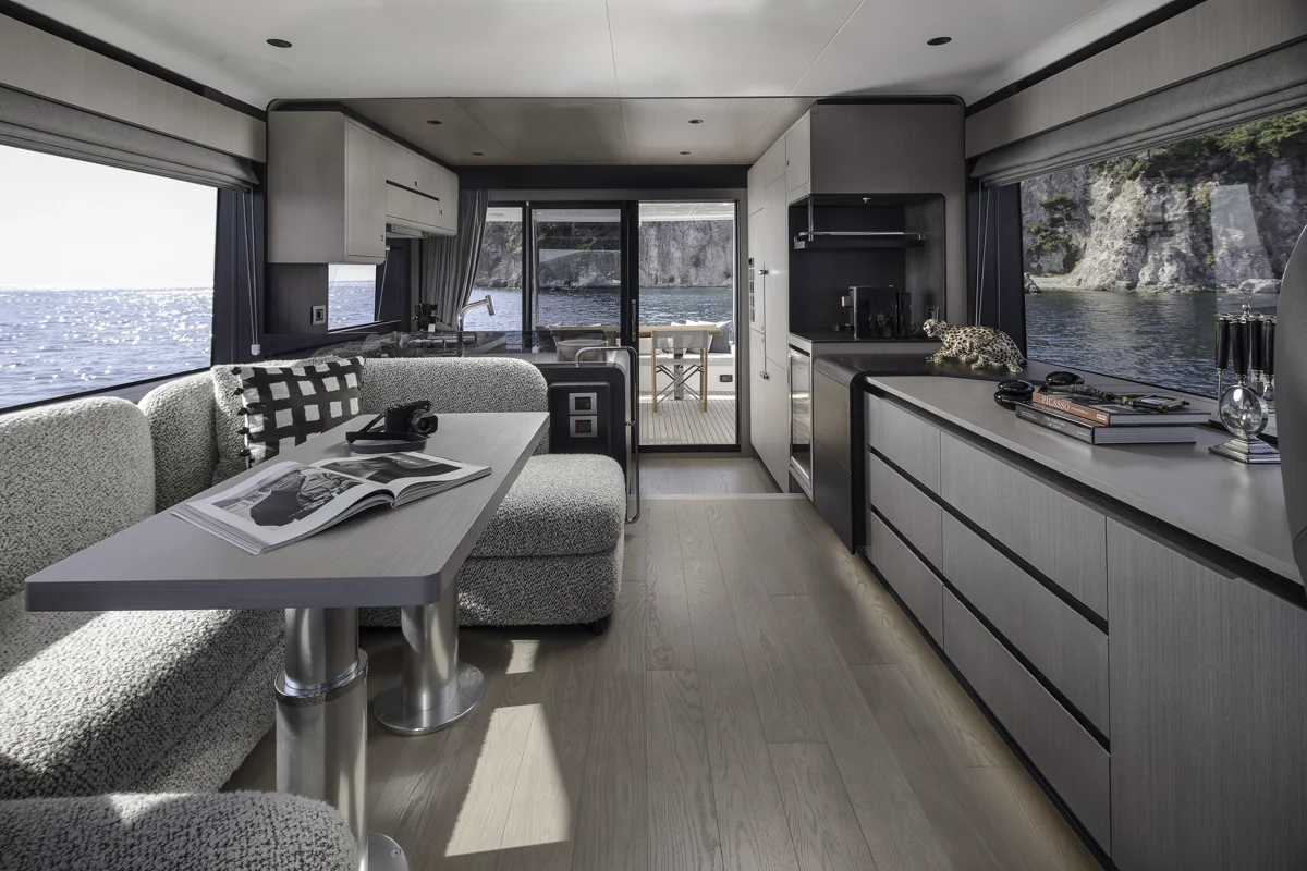 Den eksklusive “Best Interior Design” titel tilfalder Sirena 60 takket være yachtens gennemtænkte og luksuriøse indre rammer. Indretningen ombord er lys, rummelig og elegant udført, hvilket skaber en atmosfære af afslappet luksus, som selv erfarne yachts folk bemærker. Store panorama vinduer langs salonen lader masser af dagslys strømme ind og giver en fantastisk nærhed til havet, mens en åben planløsning på hoveddækket smelter salon, køkken og spiseplads sammen til ét socialt område. Materialevalget understreger kvaliteten: Salon og kabiner prydes af eksklusive træ finérer, Corian-bordplader og tekstiler i højeste kvalitet. Hver eneste detalje er udvalgt med øje for både æstetik og praktisk brugbarhed til søs – fra de ergonomiske siddepladser ved styrepladsen til de slidstærke, marine-grade overflader, der tåler livet ombord.