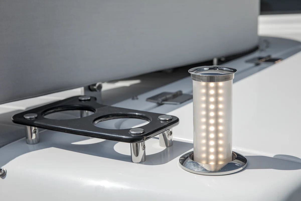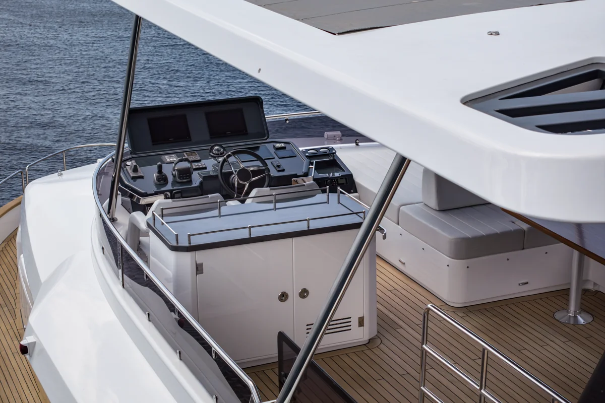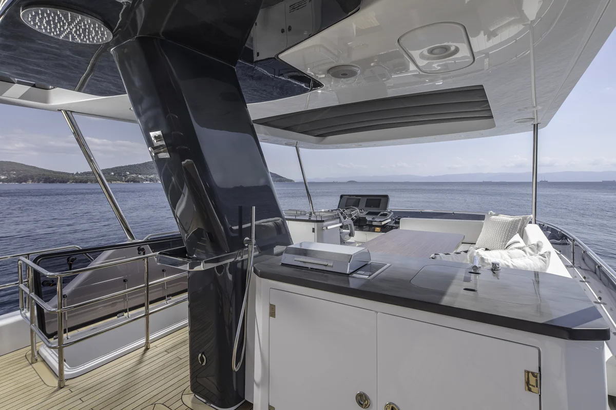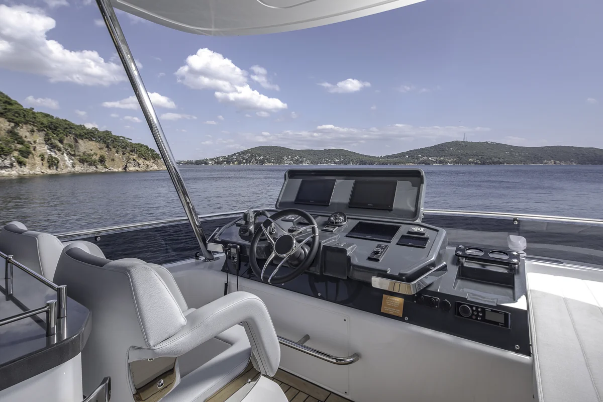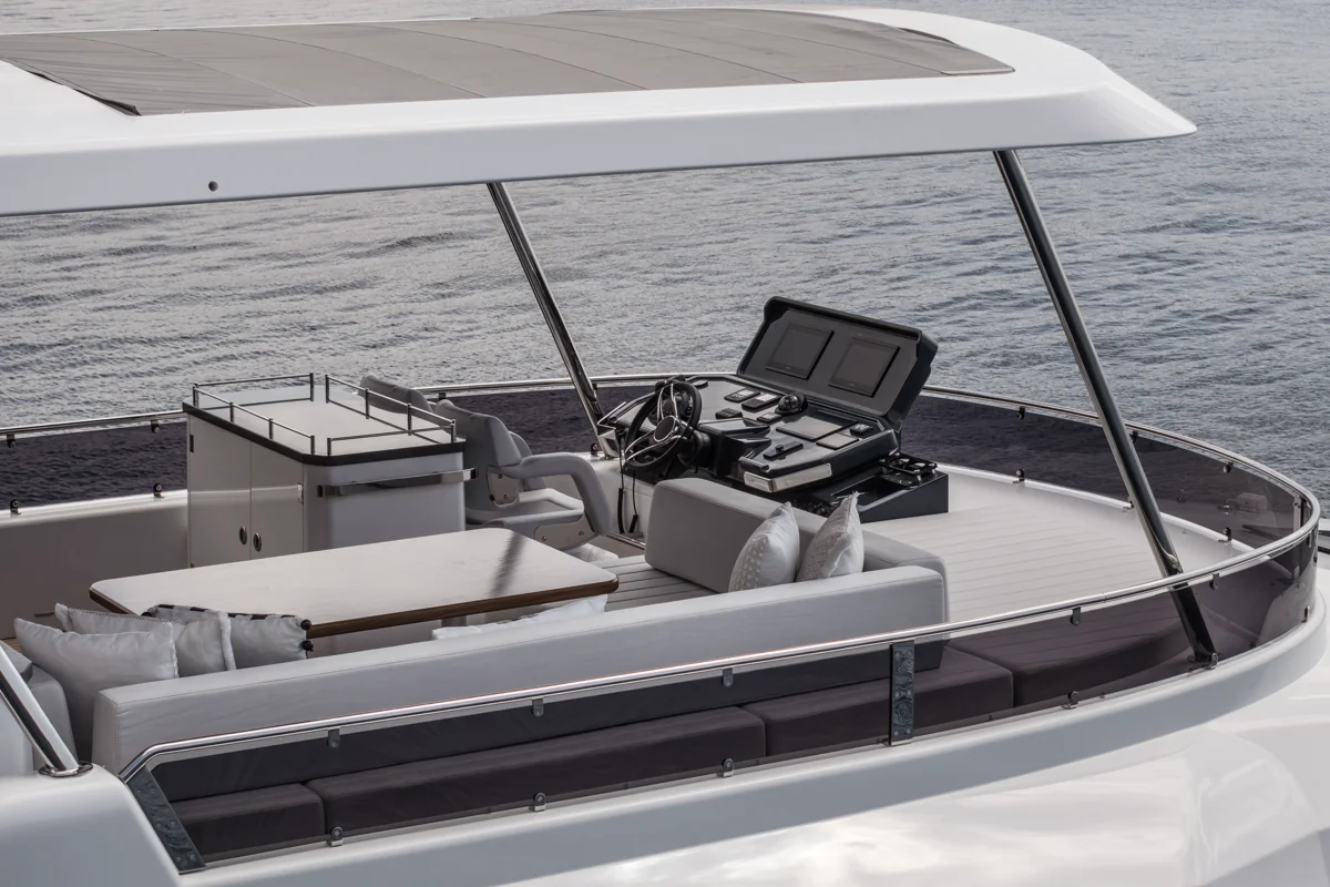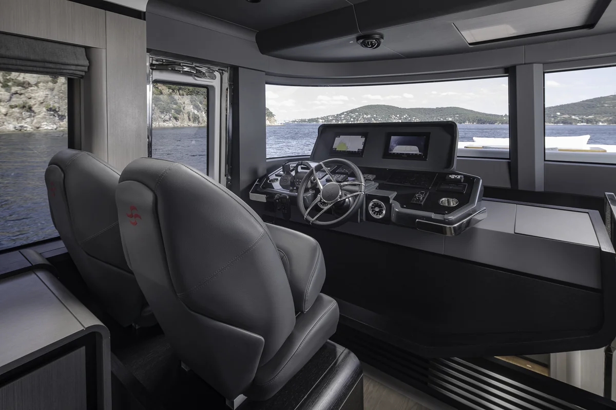 Det rummelige hoveddæk tilbyder panoramaudsigt gennem store vinduer, der giver naturligt lys og en fantastisk følelse af nærhed til havet. Sirena 60 er designet til både privatliv og sociale stunder med et åbent layout, hvor salon, køkken og spiseområde smelter sammen til ét imponerende opholdsrum.