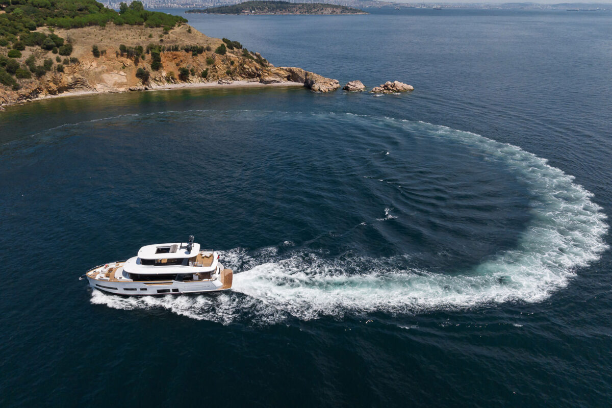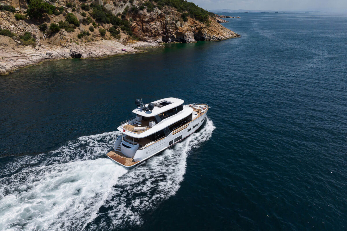 Sirena 78 er kulminationen af Sirena Yachts’ nyeste design og ingeniørkunst – en luksusyacht, der kombinerer elegant æstetik med høj ydeevne. Denne 25-meter yacht (82 fod) er bygget på et moderne halvplanende skrog, som giver en optimal balance mellem effektivitet og fart. Resultatet er en stor motorbåd, der både er brændstoføkonomisk og iøjnefaldende på vandet, hvilket gør den til et oplagt valg for kræsne yacht-entusiaster.